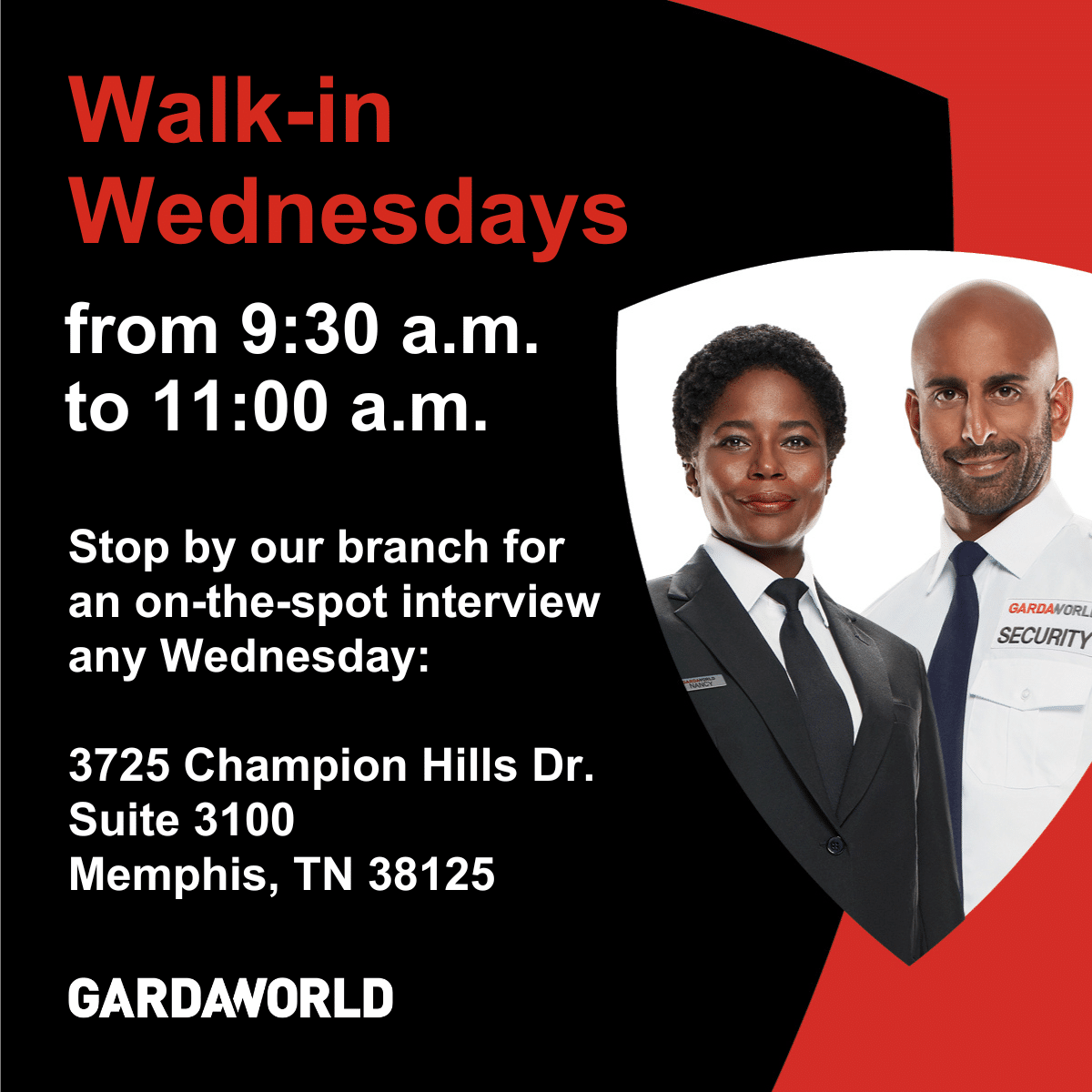Multiple positions – Gardaworld – Walk-in Wednesdays – jobs in multiple locations – Memphis, TN